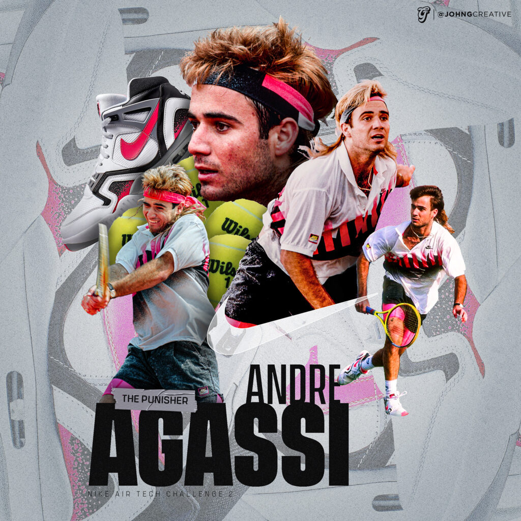 Agassi no solo fue un campeón en la pista (ganador de 8 Grand Slams), sino que con el apoyo de Nike se convirtió en un ícono de la cultura pop.